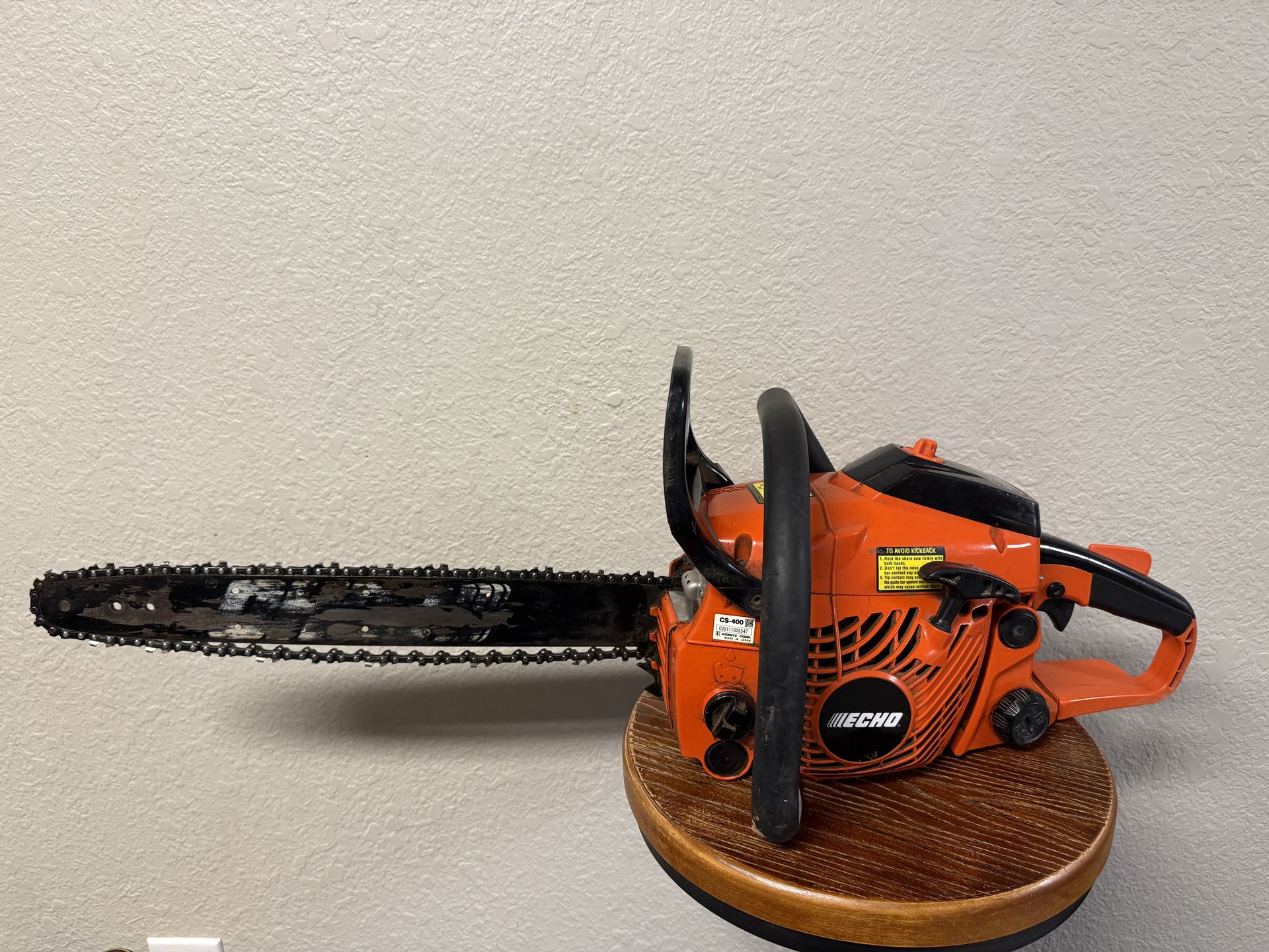 ECHO CS-400 gas chainsaw with 18” bar. 40.2cc 2-stroke engine, i-30 easy-start system, automatic oiler. Cuts logs up to 32” diameter. Runs strong — chain just needs a sharpening. Fuel included. The newer version (CS-4010) goes for $349 new at Home Depot. This is a solid saw at a great price. Cash only, no trades. Message me to set up pickup.