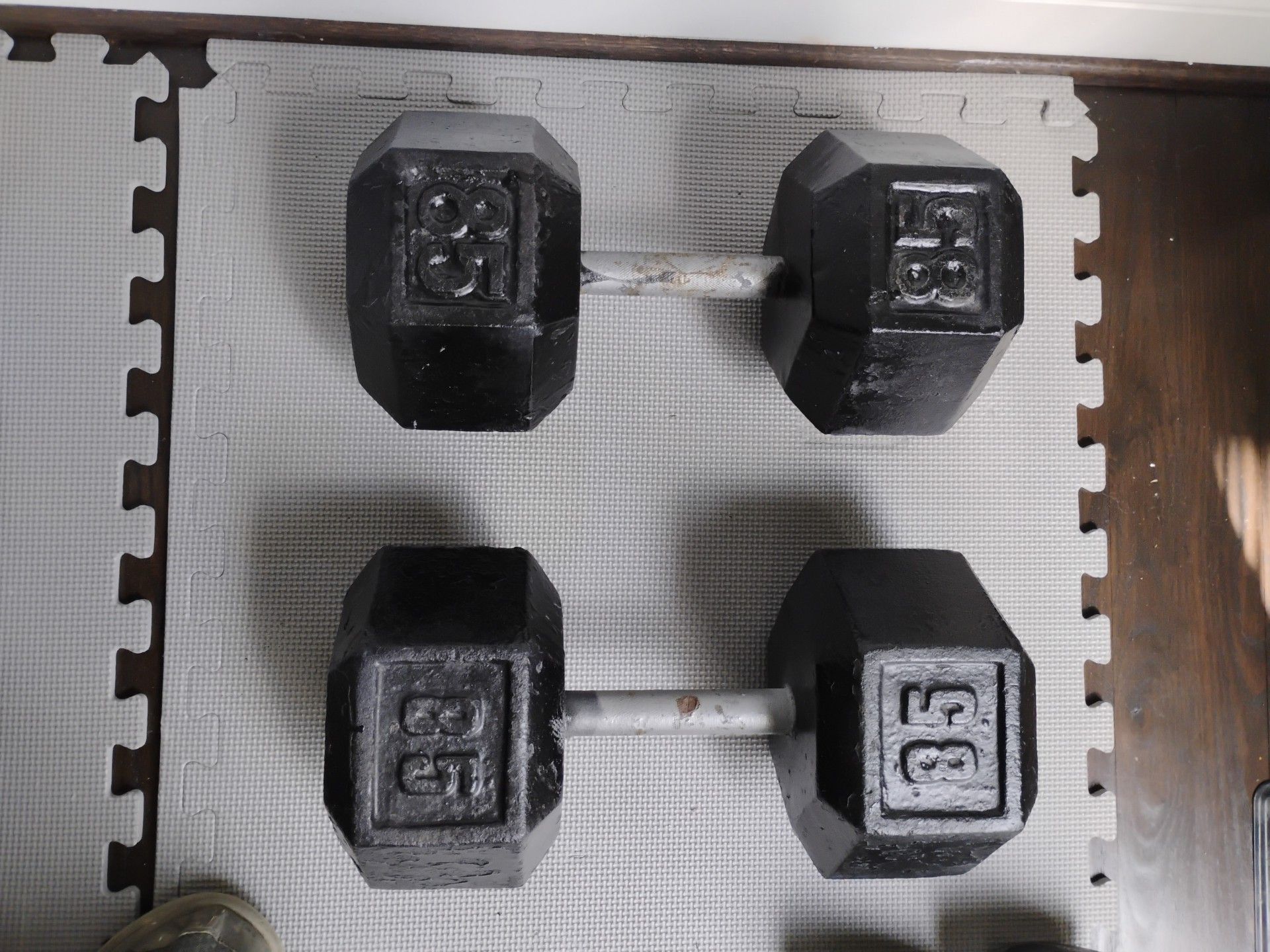 Pair Of 85 Ibs Cast Iron Dumbbell