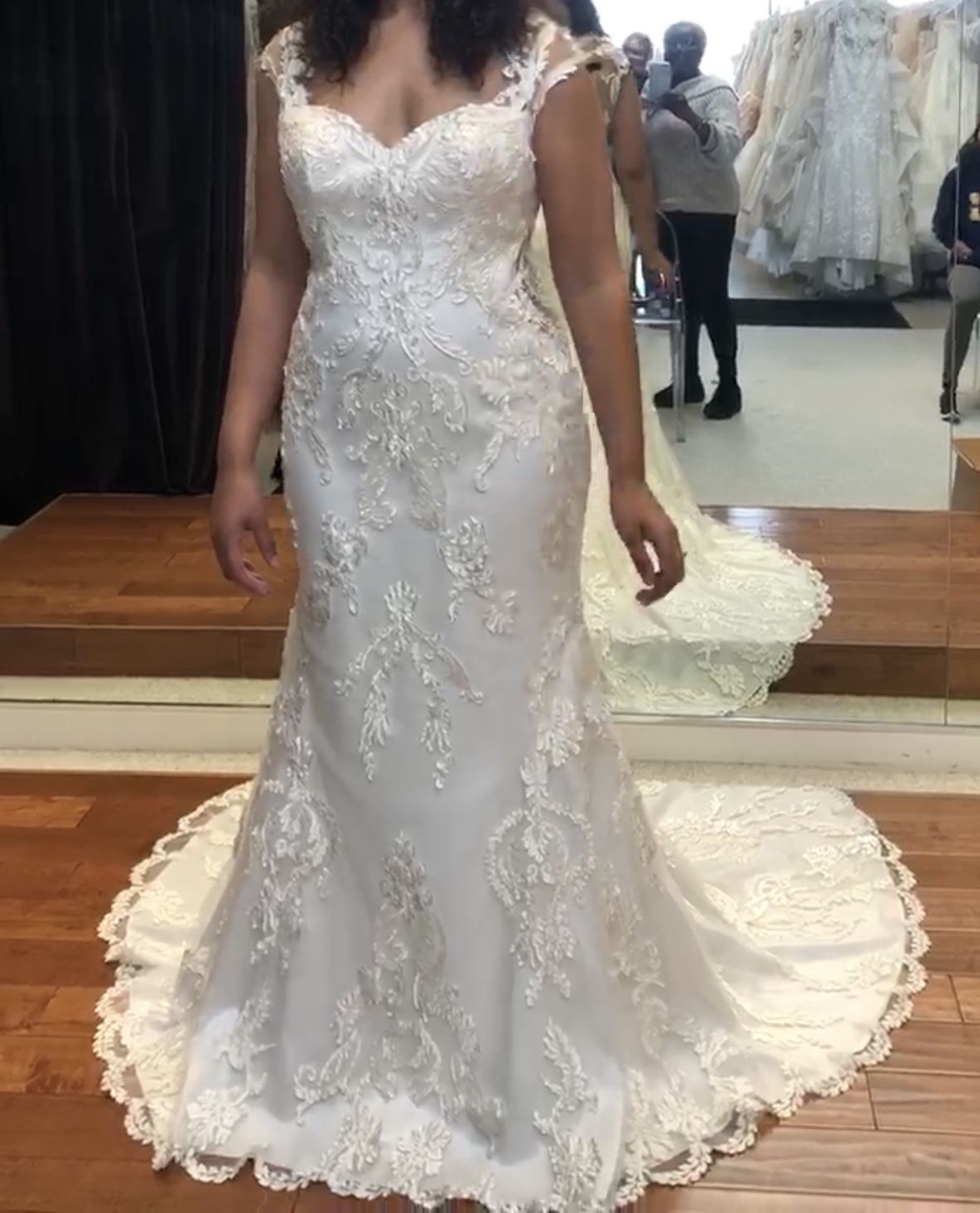 Mermaid style Sottero and Midgley laser cut lace wedding dress with train. Dress is size 16, approximately 60 in long and the train is 18 in. Worn once