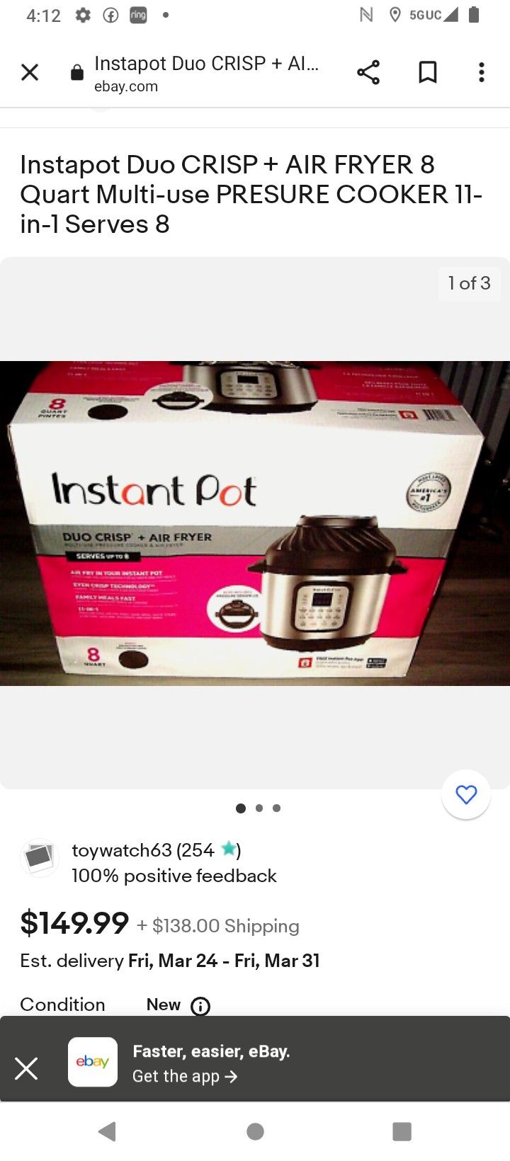 Instant Pot Duo Crisp +Air Fryer New 8Quart $120