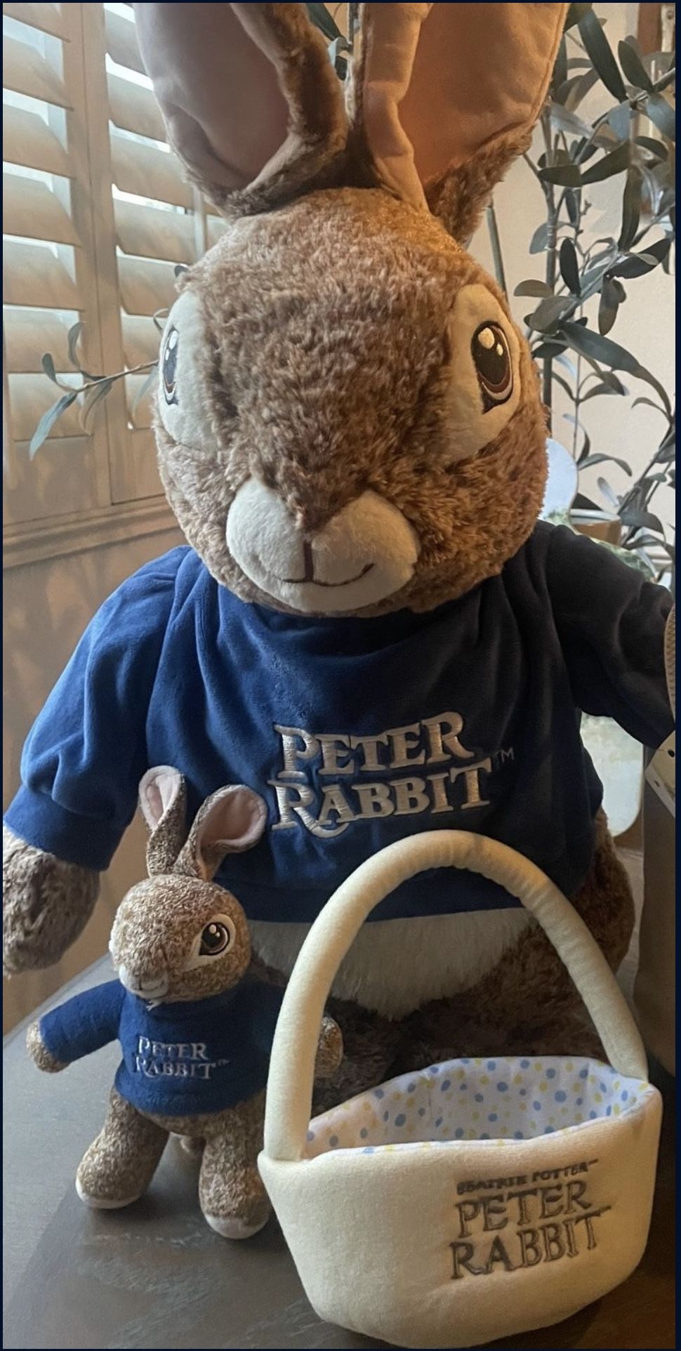 Large stuffed Peter Rabbit,, Peter Rabbit decorative cutting board/display, cotton Peter Rabbit tote …all in new condition