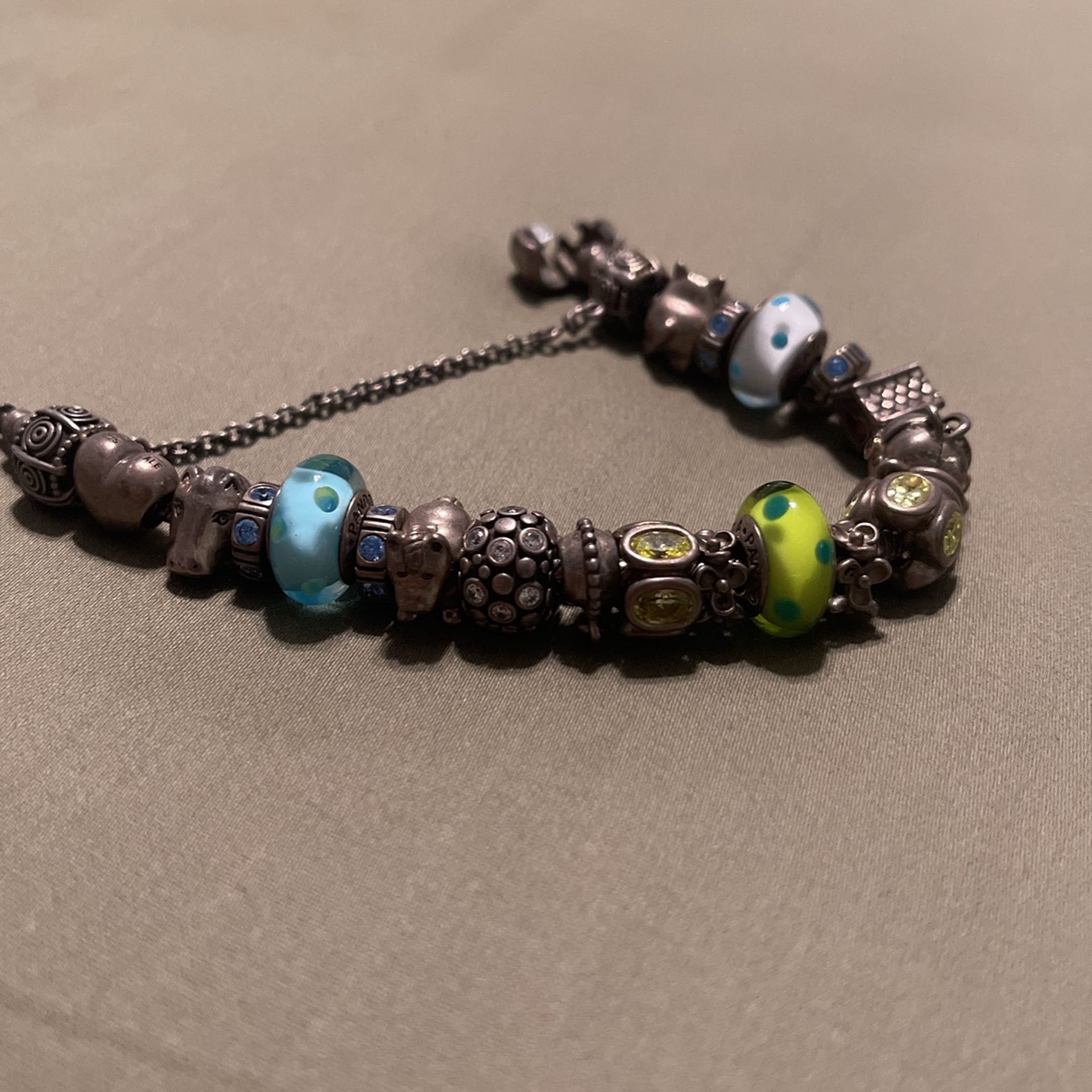 Retired heart $20 Horse head $20 Pandora light blue spacer (4) $15 ea Blue with blue-green dot murano bead $25 Horse body $25 Sparkling clip $30 Fleur de Lis $30 Lime Green spacer (2) $25 ea Flower spacer (2) $15 ea —— SOLD Green with blue dot murano bead $25 Horse shoe charm $20 Purse clip $25 Dog kennel $30 Retired white blue dot murano bead $25 Target bullseye dog $20 Safety chain $30 All genuine sitting in a jewelry box for years, prices are all OBO