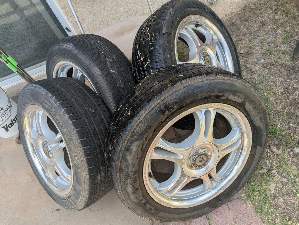 American Racing AR95T 16x7 5x114.3 All center caps and lug covers. Tires do hold air and have tread left. $300 picked up only near Hayden and Chaparral in Scottsdale