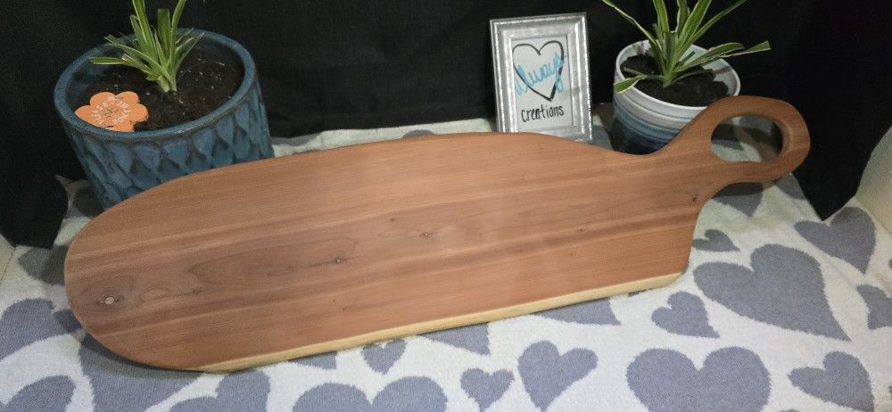 Large Cedar Live Edge Charcuterie Board or cutting board. Amazing color and grain. Fully treated with cutting board oil/wax Size is 38in x 10in x 1in. Beautiful peice.