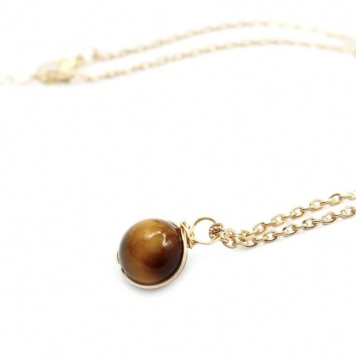 Gold Plated Stone Jade Jadeite tiger eye brown Bead Beads Pendent