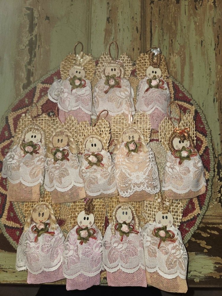 Vintage Handmade Angel Sachet Ornaments. Set Of (12).
