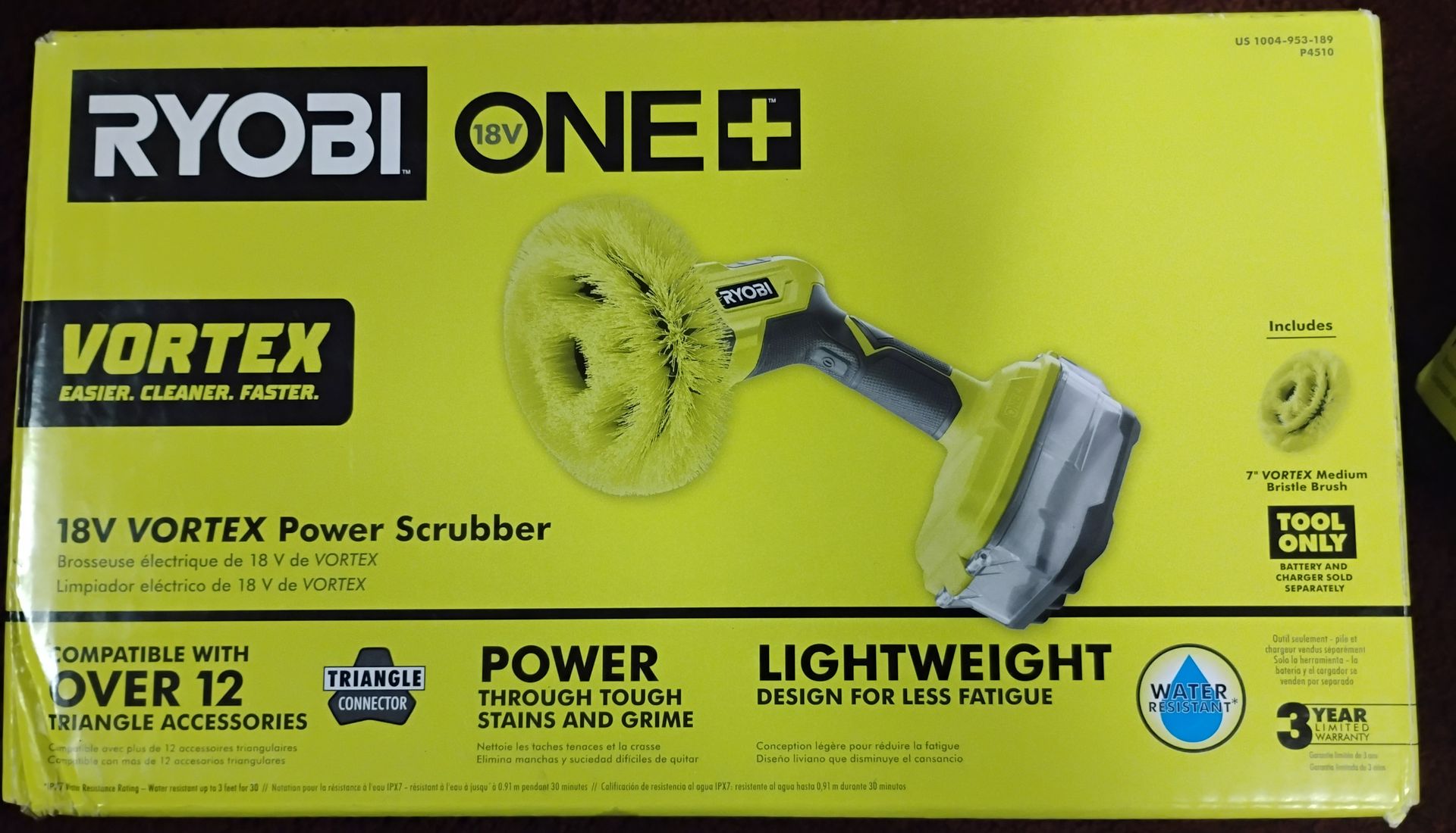 As shown in photos Ryobi ONE+ 18V Cordless VORTEX Power Scrubber (Tool Only) Model # P4510 Brand new in box 1 remaining $85 or best offer