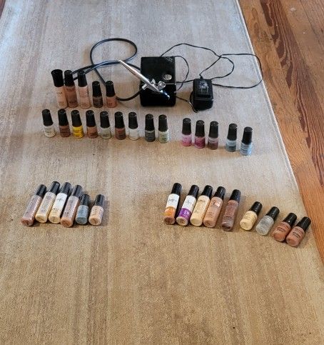 Luminess airbrush system & 34 different bottles of 14 colors of eye shades/bronzers/matte/glow/Love (hydrater)/hylighter/concealer/contour/x-out/final seal/blushes. 6 bottles still sealed & not open. Great condition. Have fun!!✨️