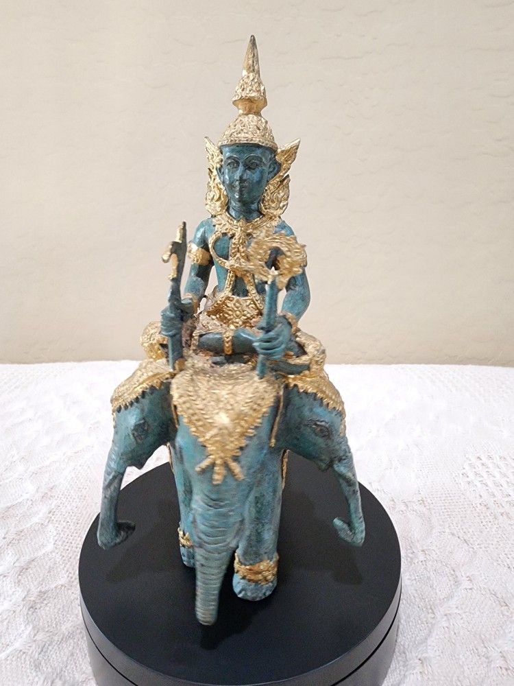 π―π PLEASE READ ALL β¬οΈ If it is posted it is available. Pick up only. 152ND AVE and Camelback area of Goodyear. VTG Lord Indra Riding Airavata / Erawan Three-headed Elephant Green Gold Bronze Stunning condition with the gold finish in excellent condition. Solid bronze/brass India statue with what looks like an applied green patina - unmarked that I can find. Measures about 9" tall x 5" long and 4" wide. Has a weight of 2lb 9 oz. Open to reasonable offers