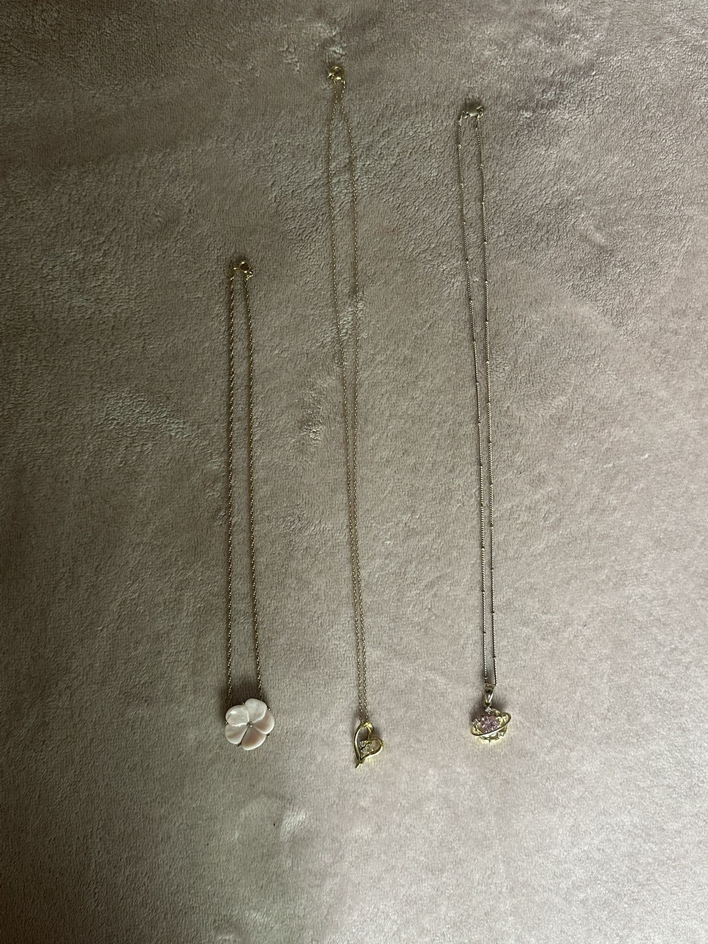 Hello friends! These are 3 different necklaces, good quality, and in very good condition. 1 necklace for $5 or all 3 necklaces for $10. Feel free to send me a message if you have any questions or doubts and prices are always negotiable. (Check out my page, I post new items every week! :)) / ¡Hola amigos! Estos son 3 collares diferentes, de buena calidad y en muy buen estado. 1 collar por $5 o los 3 collares por $10. No duden en enviarme un mensaje si tienen alguna pregunta o duda, y los precios son siempre negociables. (¡Visiten mi página, publico artículos nuevos cada semana! :))