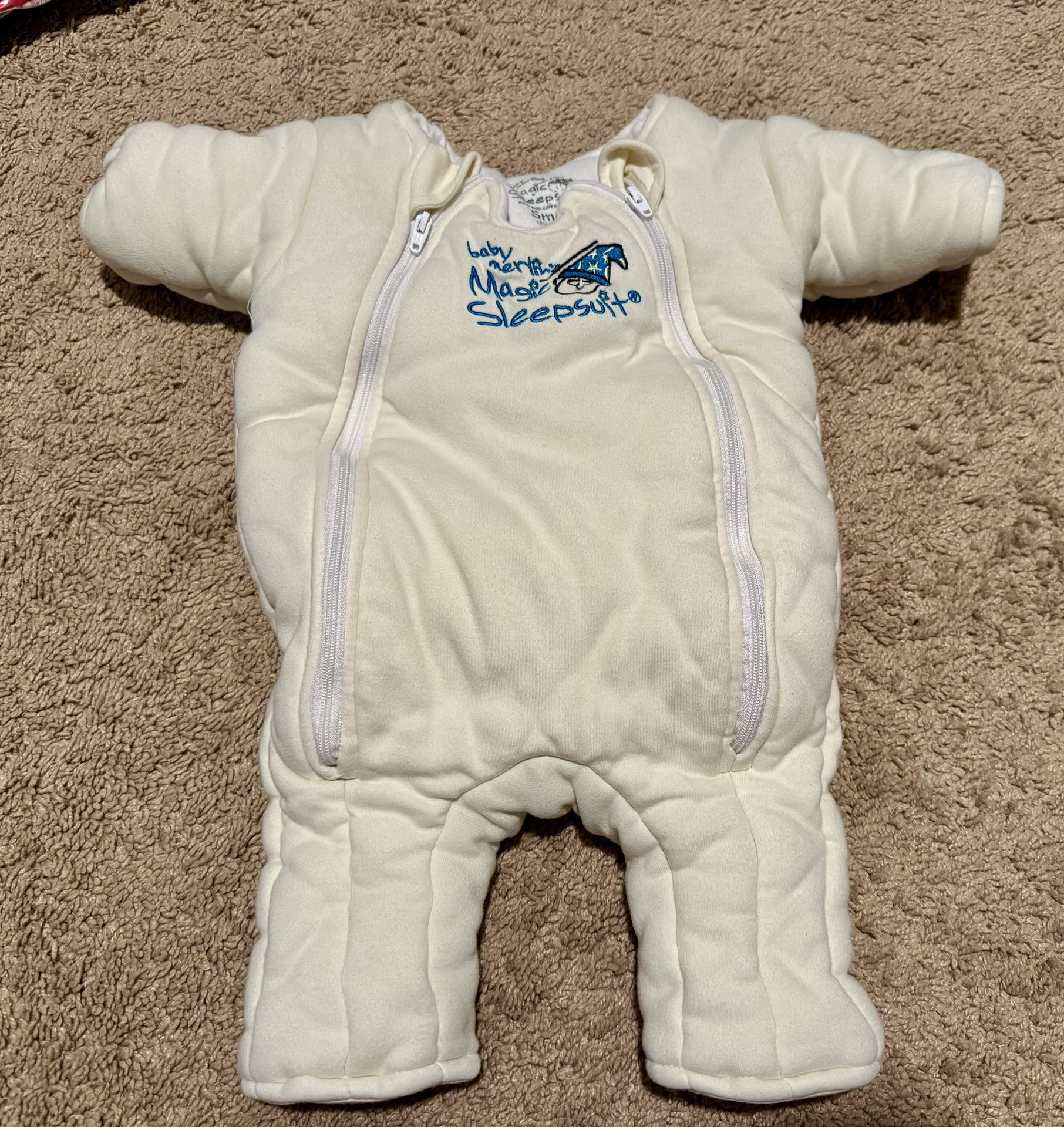 Baby Merlin Magic Sleepsuit. Gently used. Size small (12-18 lbs) cotton fabric. The Sleepsuit helps babies transition from the swaddle to a sleep sack.