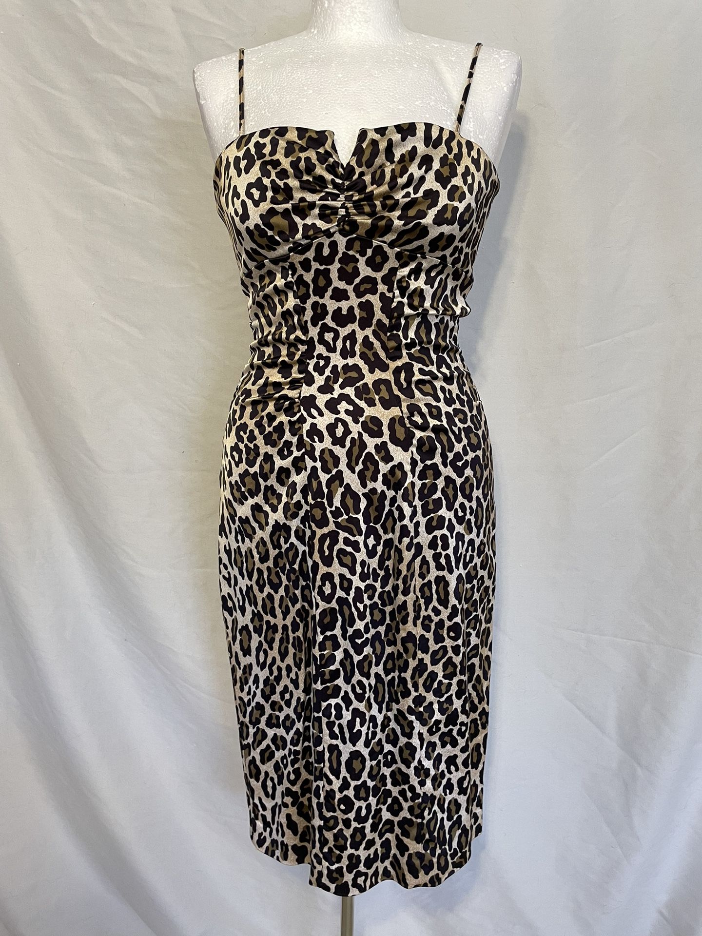 Brown and black leopard print dress ladies size six. Spaghetti straps. Stretchy. Below knee length. Party, club, dance. Location near Greenway Road and 40th Street Phoenix Arizona.