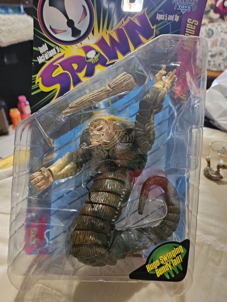 Spawn was never take out of the box buy the card came off the protector and the logo on the front came off