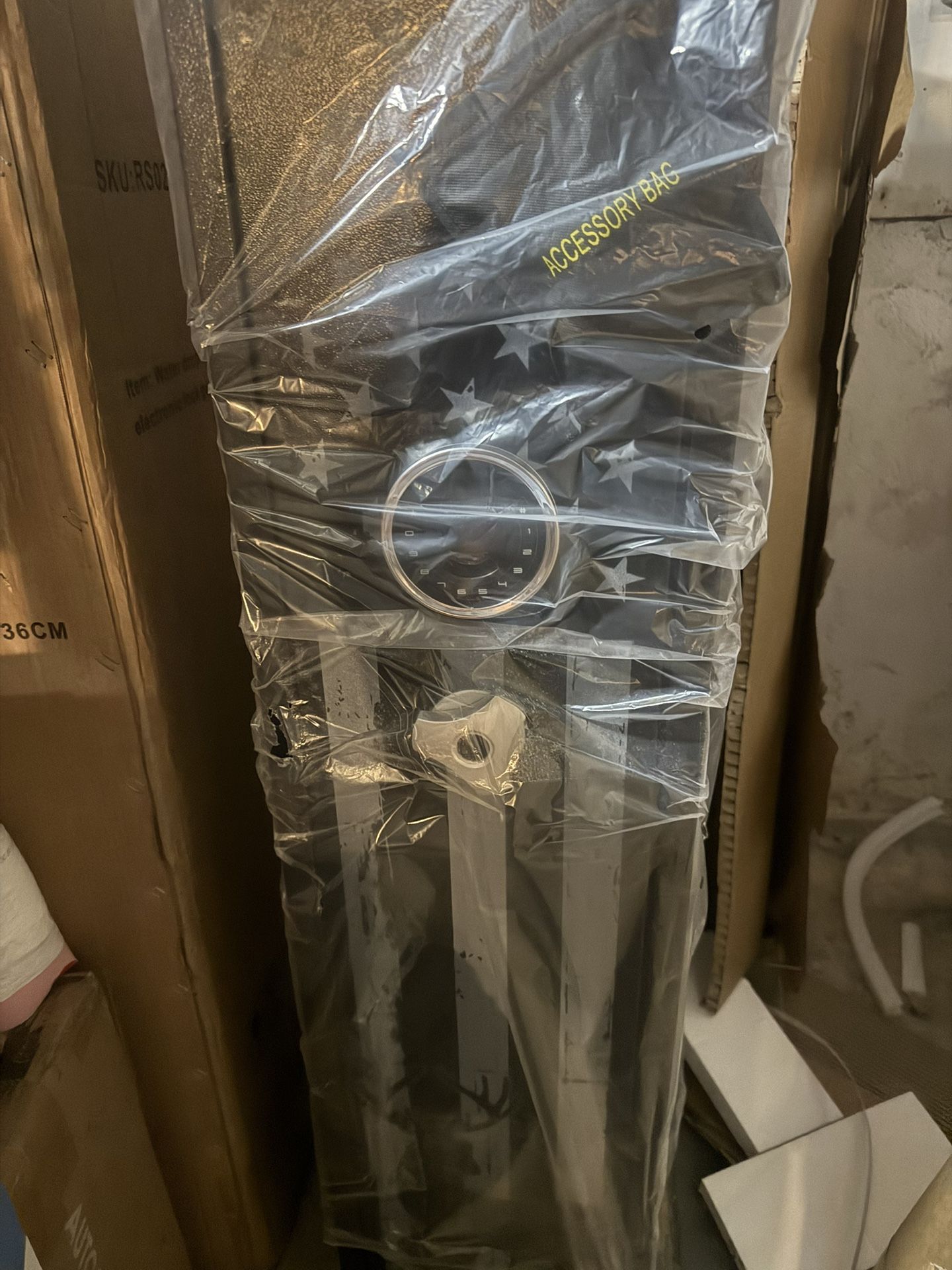 Has 2 keys and keypad for passcode. Also some pistol pockets on inside door. No assembly required. Ready to go.