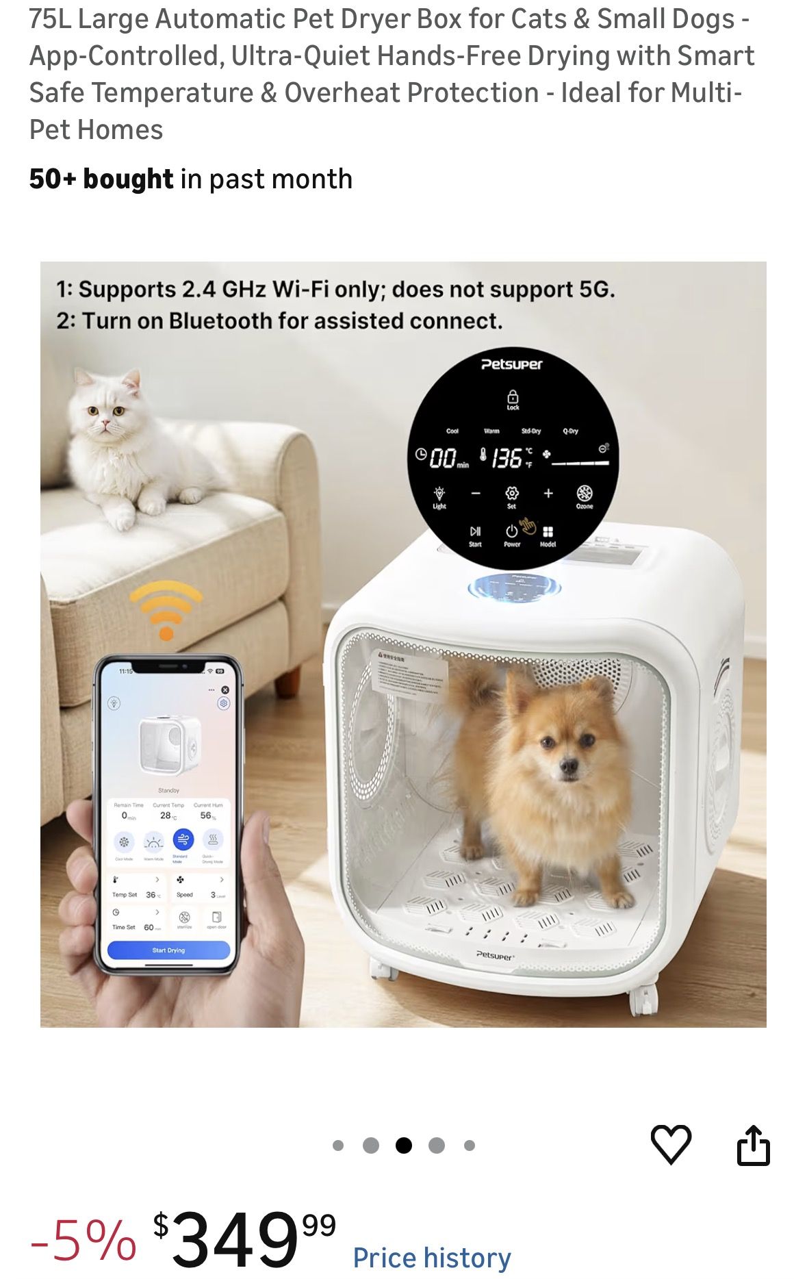 75L Large Automatic Pet Dryer Box for Cats and dogs. Avoid the hassle of having to dry them with a towel. I bought two and only need one. We love are dogs and they deserve to be pampered and loved.