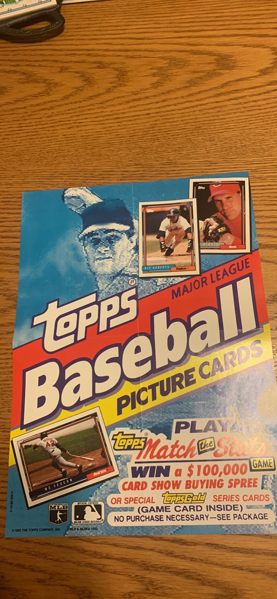 1992 Topps Store Baseball Card Poster Bip Roberts, Rob Dibble, Mo Vaughn