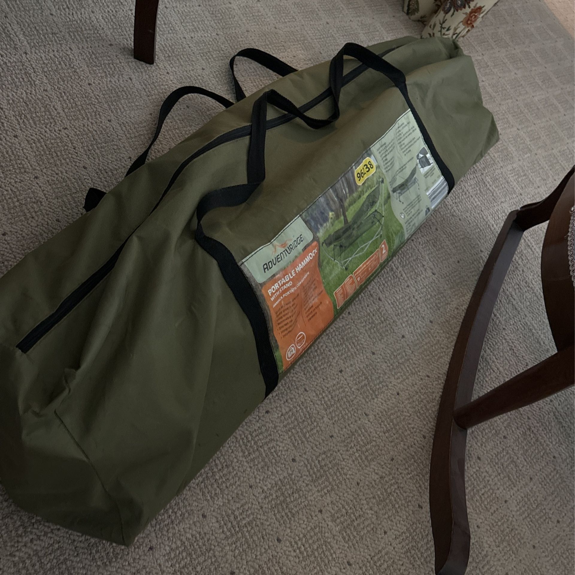 Very good condition portable hammock. Used for camping or relaxing in the back yard.