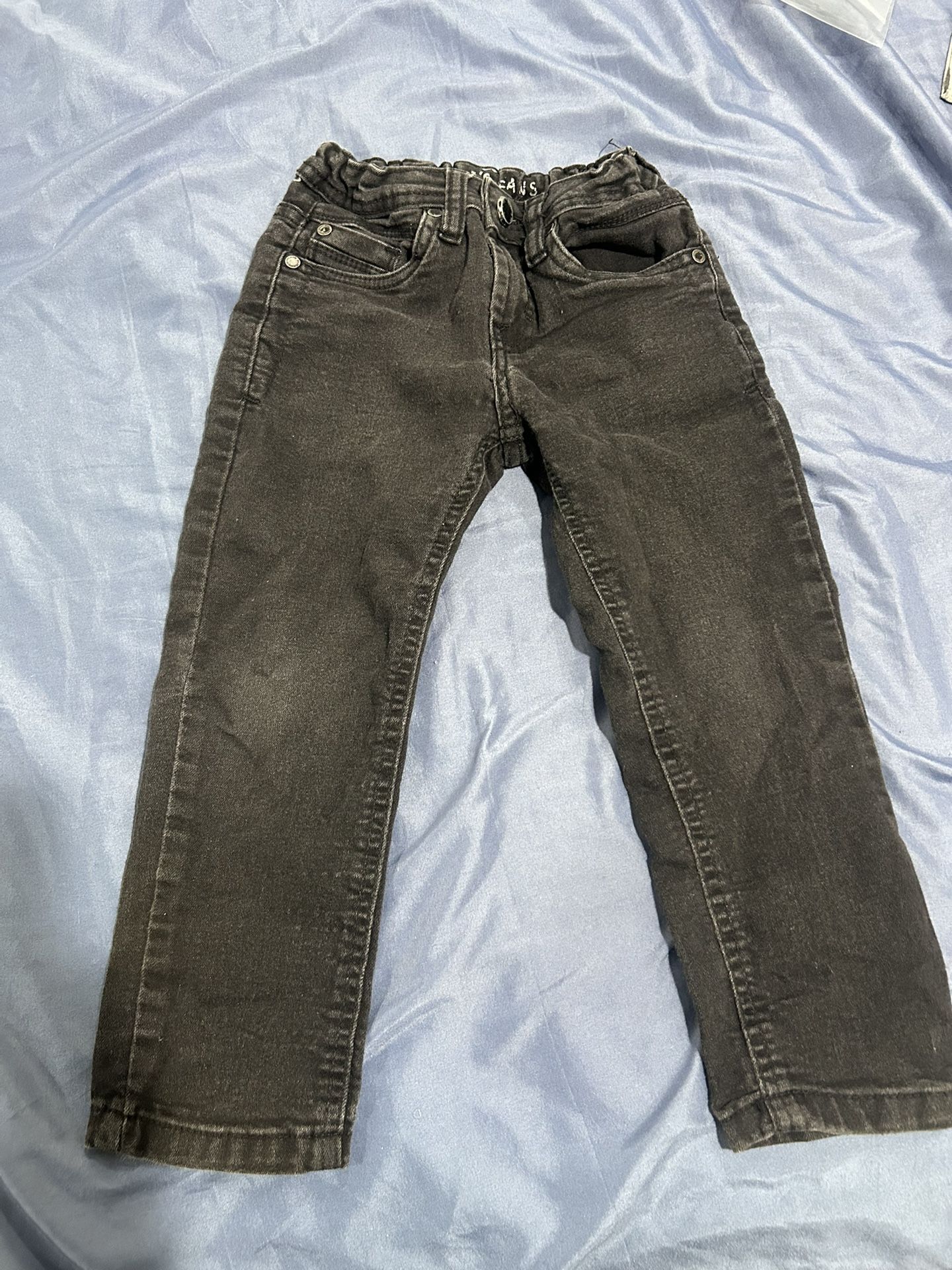Size 4 for toddlers, two black jeans for the price of one. Brand of jeans on pics.