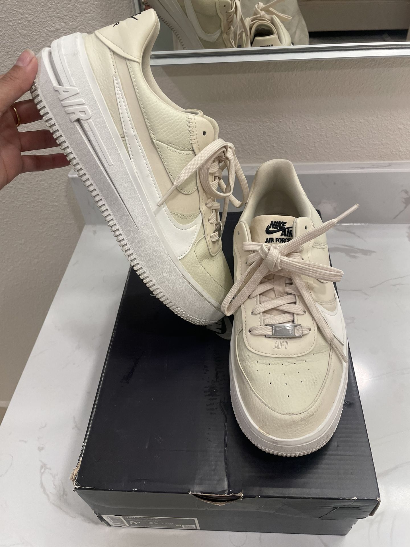Classic, easy to wear AF1 style in Fossile/Sail - Summit White-Black Style. Size 8.5 womens FITS LIKE 8/willing to negotiate price **Or best offer**