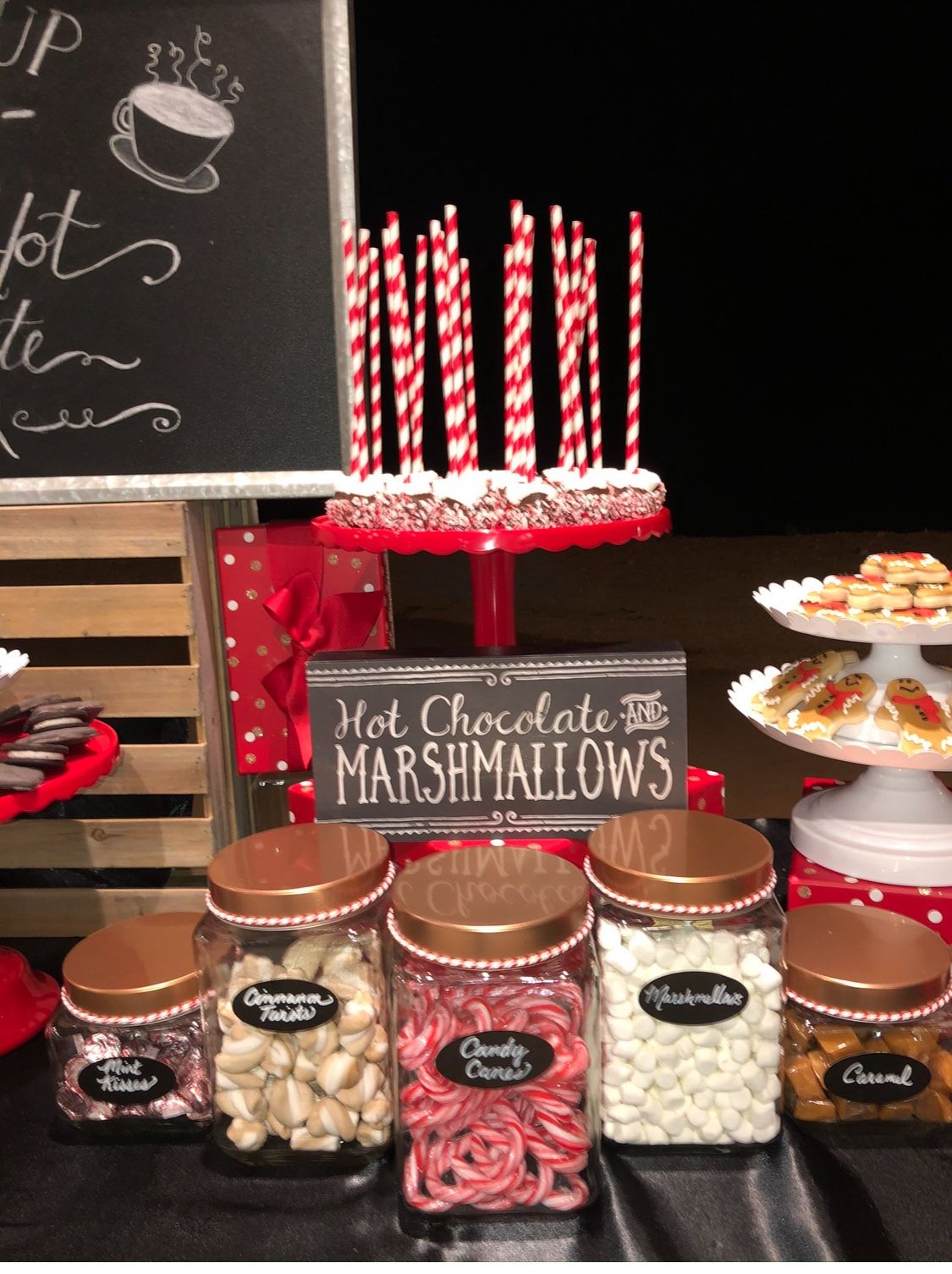 4 large- 4.5” x 4.5” x 7” tall 2 small - 4.5” x 4.5” x 4.5” tall Red/white cording comes off This listing is for the candy containers with copper lids only. The other items are posted separately - red platters, coffee urns, chalkboard sign, white tiered platters, galvanized platters