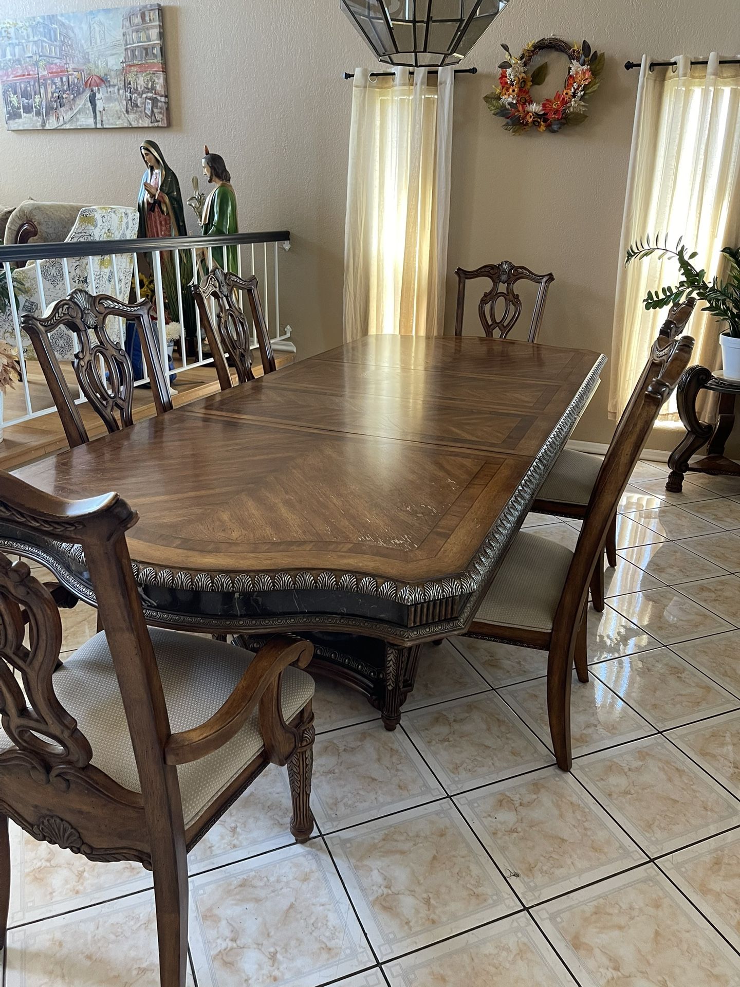 Wood dining table comes with 6 seats kept in great condition