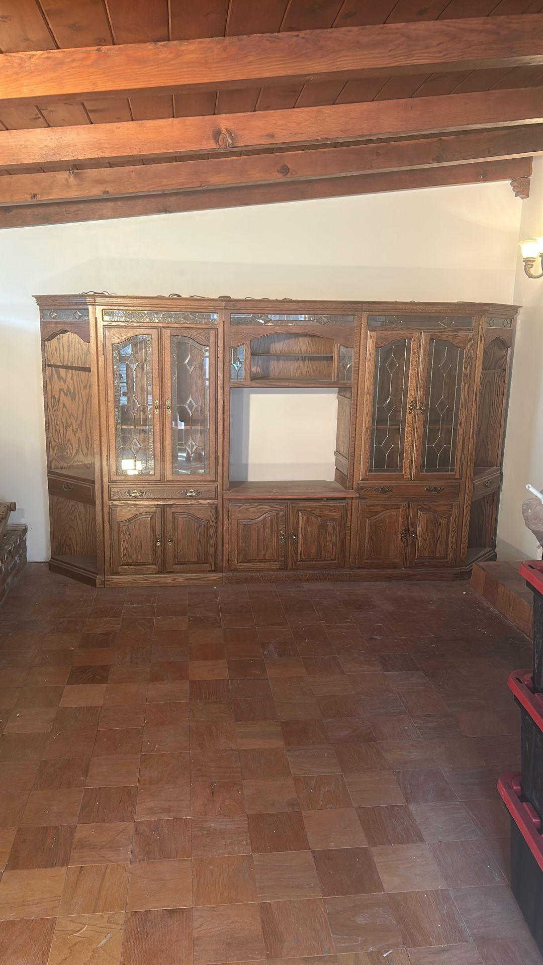 I’m located in Tujunga. This FREE Oak Wall Unit is made up of five separate cabinets that join together to form one wall unit. All glass shelves and leaded glass are in excellent shape. ( no cracks or chips) Drawers below have shelves for storage Above are lights all work-to show off your collectible’s through glass below . All 5 pieces are easy to assemble. Located in Tujunga near Del Taco on Foothill Blvd Del Taco address: 6275 Foothill Blvd Tujunga CA Pickup Only - must have large truck or U-Haul -two people or more -blankets - good news there are no stairs taking to truck