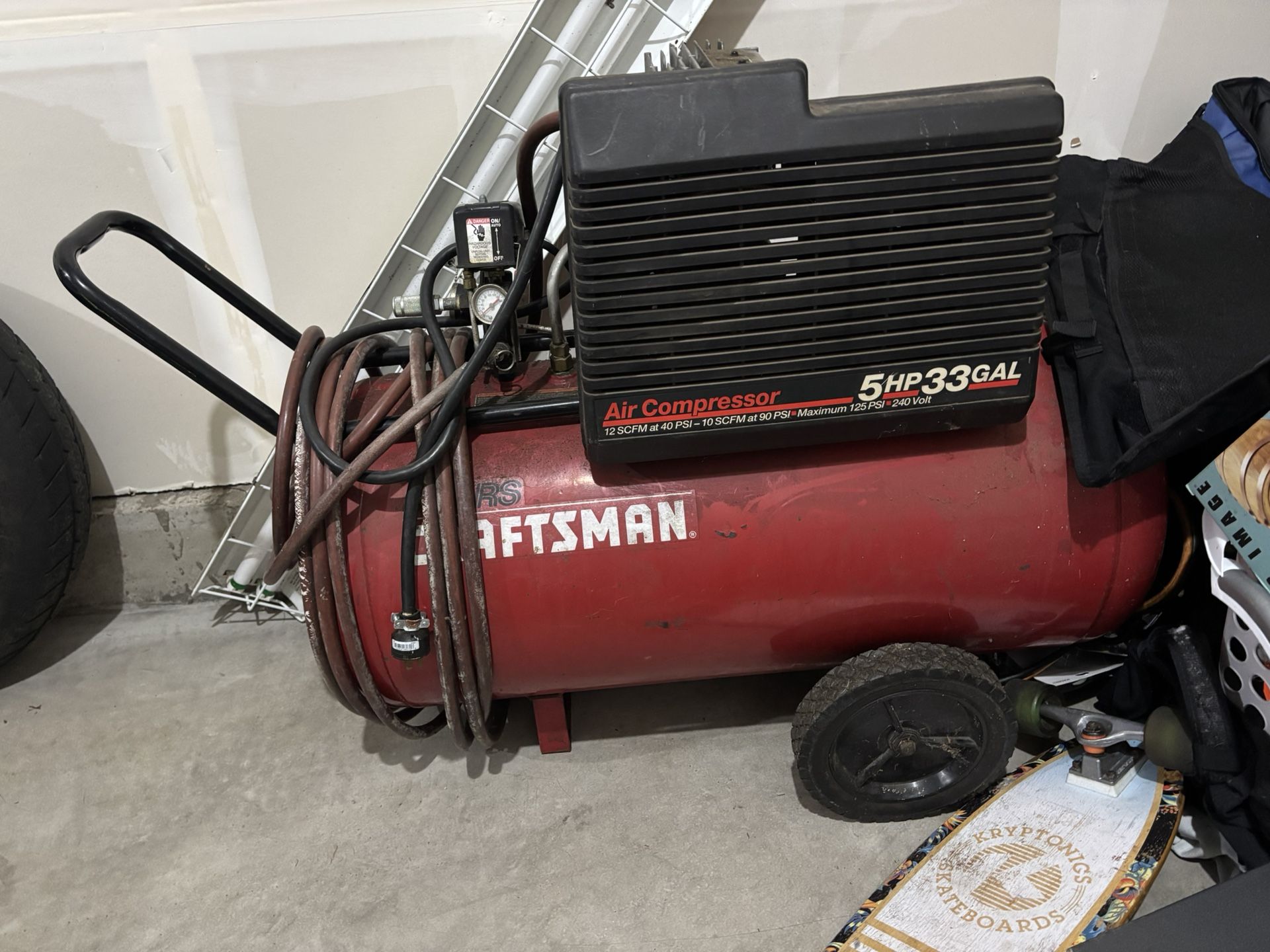 Craftsman 33 gallon air compressor, good condition. Needs a 240 outlet. $450 OBO