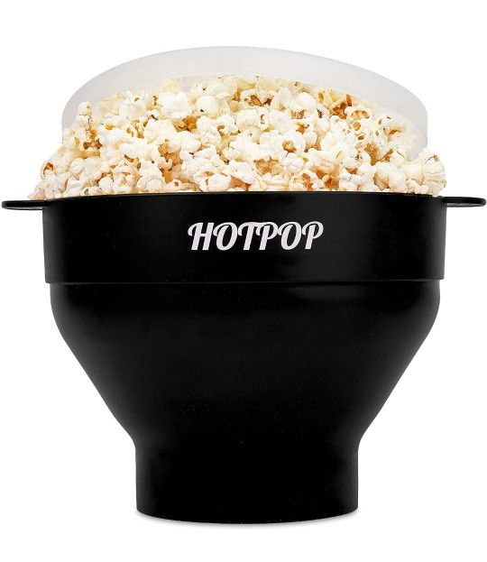 The Original Hotpop Microwave Popcorn Popper, Silicone Popcorn Maker, Collapsible Bowl BPA-Free and Dishwasher Safe- 20 Colors Available (Black)
