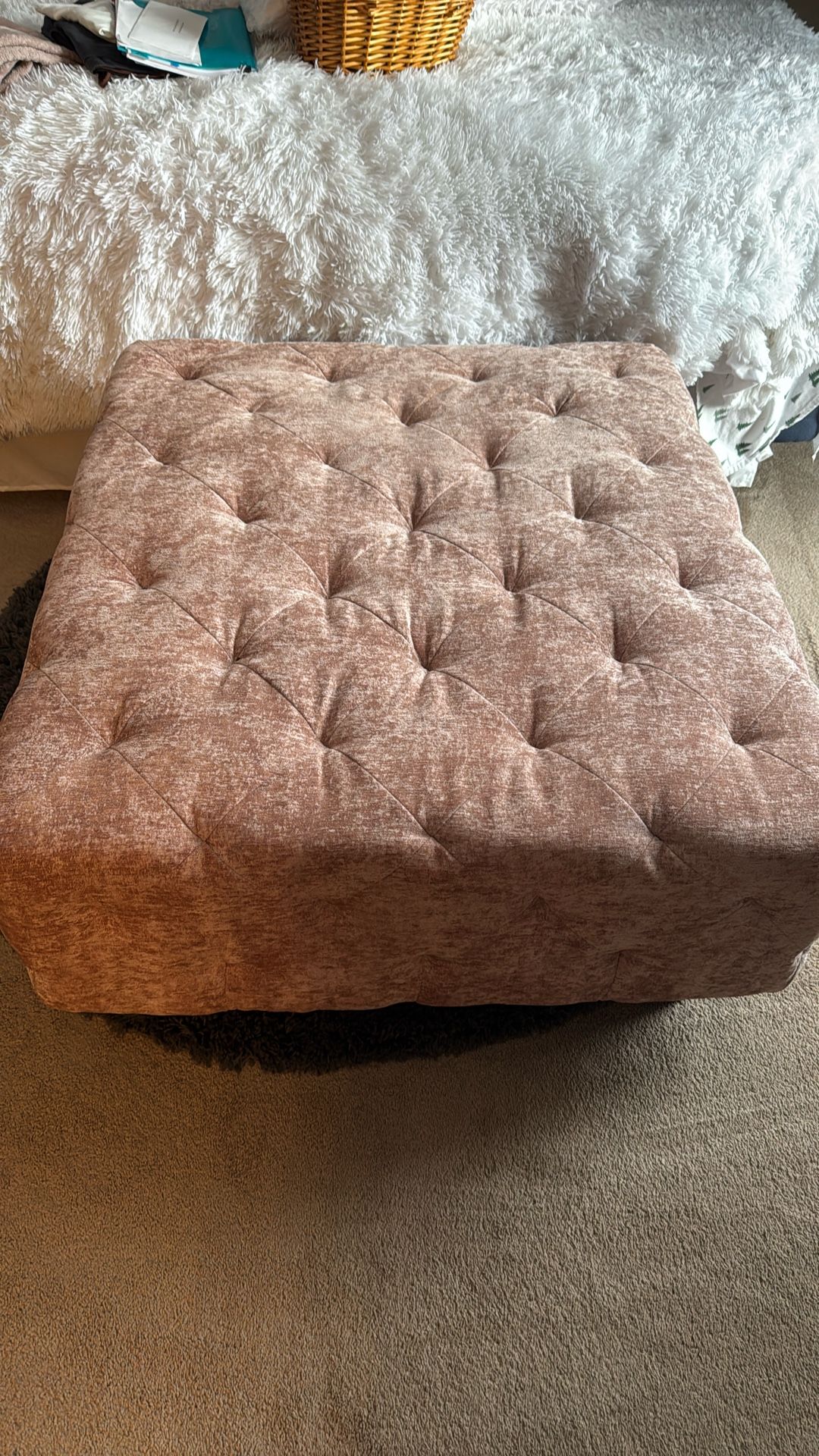 Gently used oversized ottoman - in great condition. 43 x 38.5 x 19” Great for bedroom or living room. No storage. Org. Price $400 Available for pickup Fri-Mon.