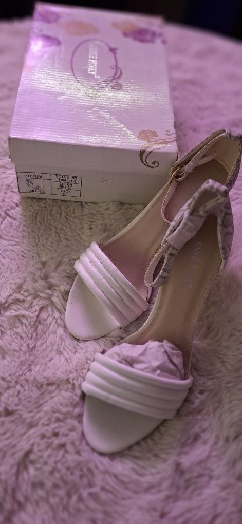 White & Reptile Skin Ladys Heels Sz 9