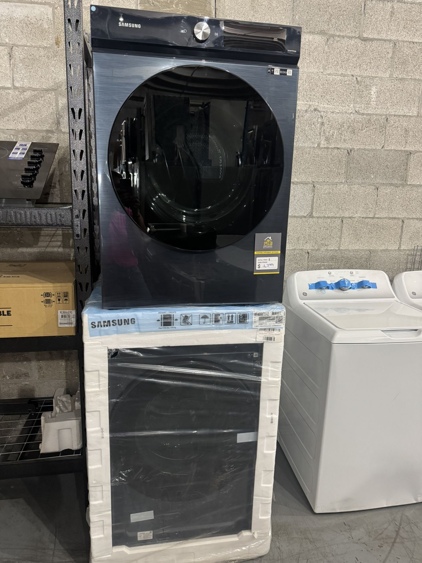 Set Samsung - BESPOKE 5.3 Cu. Ft. High-Efficiency Stackable Smart Front Load Washer with Steam Brushed Navy Smart Electric Dryer with Steam Set Bespoke lavadora y secadora inteligente Delivery, install and removed Warranty