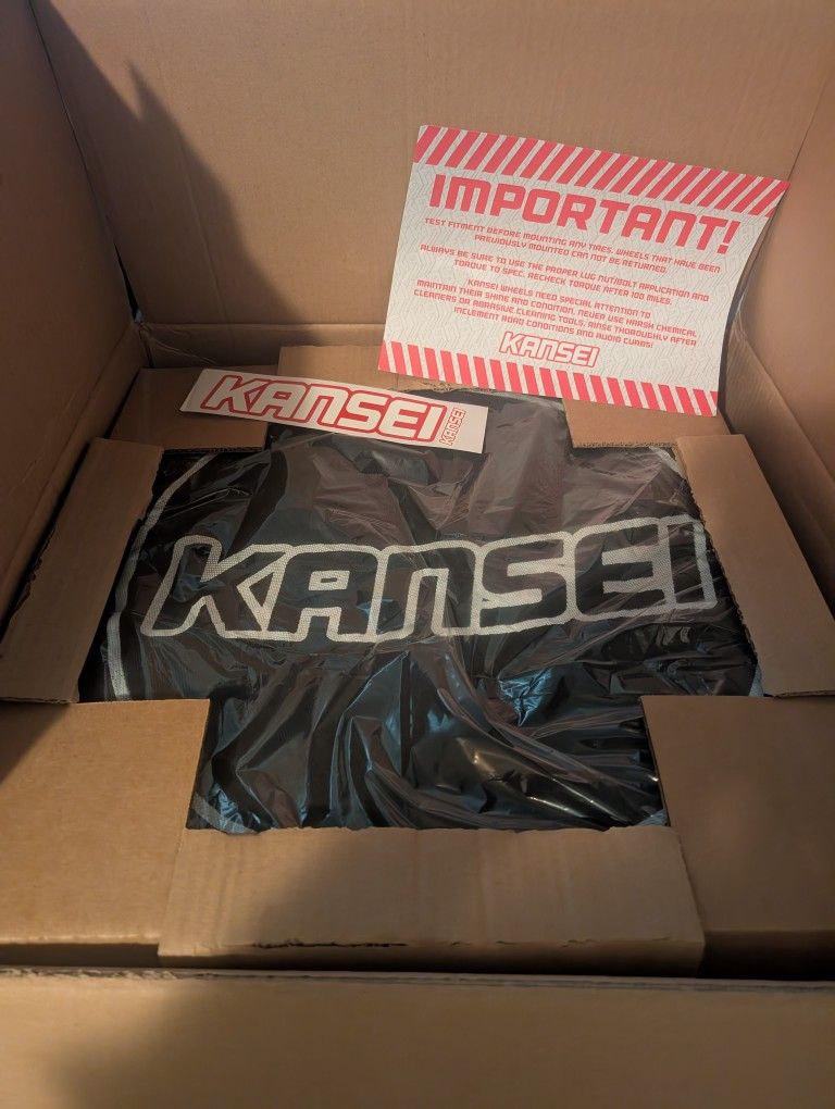 Brand new in box only one box opened to inspect wheel and make sure valve stems came along with my order Have red aluminum kansei valve stems included And hub rings to fit on a frs/BRZ/gt86 5x100