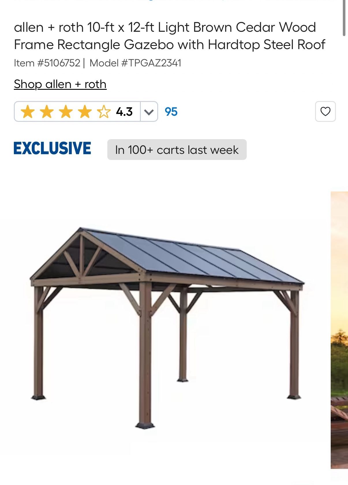 10x12 Gazebo. Put up less than a year ago basically brand new. $1,200 paid $2,000 for it.