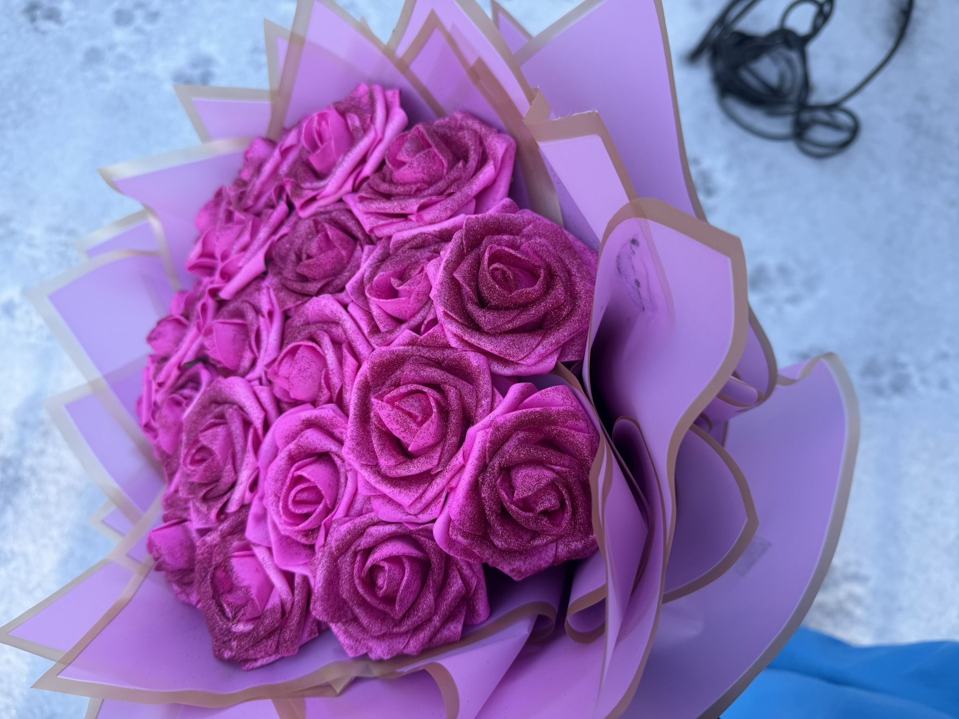 Artificial flower bouquets for Valentine’s Day Russ are two dollars each. You will get one add-on, which would be a jewel a crown a butterfly additional butterflies are four dollars each. The small crowns are five and the larger crowns are 12. The colors that we have are pink, red blue purple, green, black and orange. They are wrapped and coordinating paper. Call (contact info removed) to place your order to ensure that it is ready for Valentine’s Day.