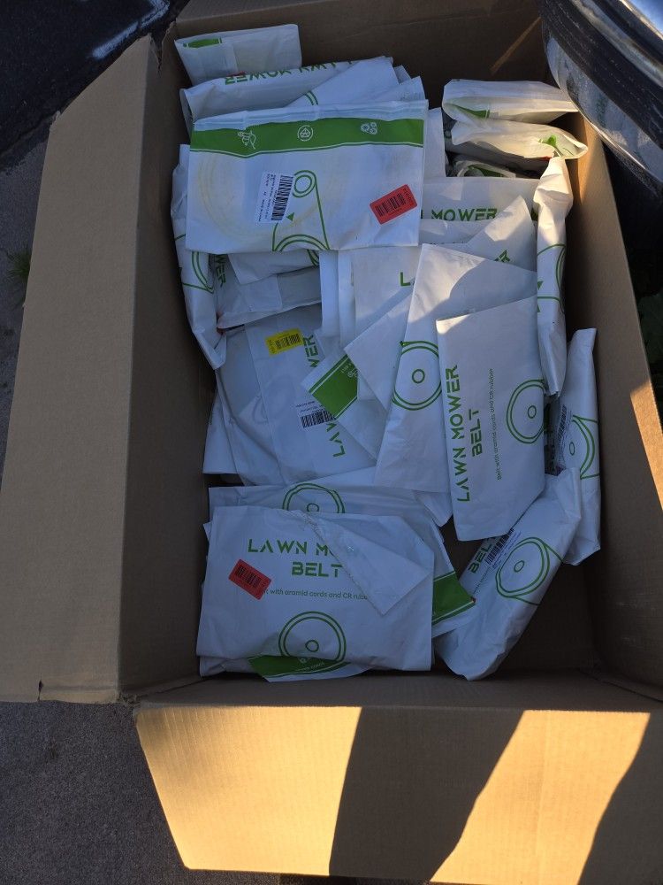 Entire box of misc lawn mower belts came in a Amazon pallet with other items have no use for them make me a offer on the entire box must be cash and pickup only