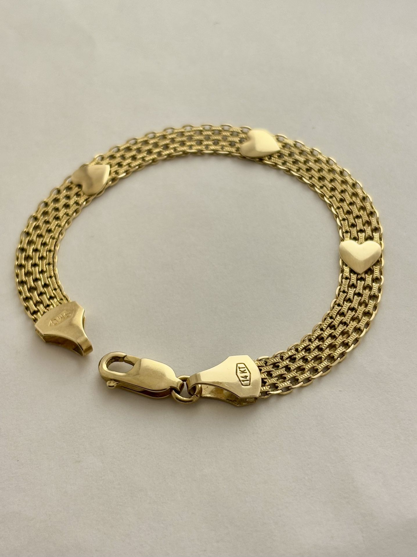 14K Gold Heart Mesh Bismarck Chain Bracelet 7 inch