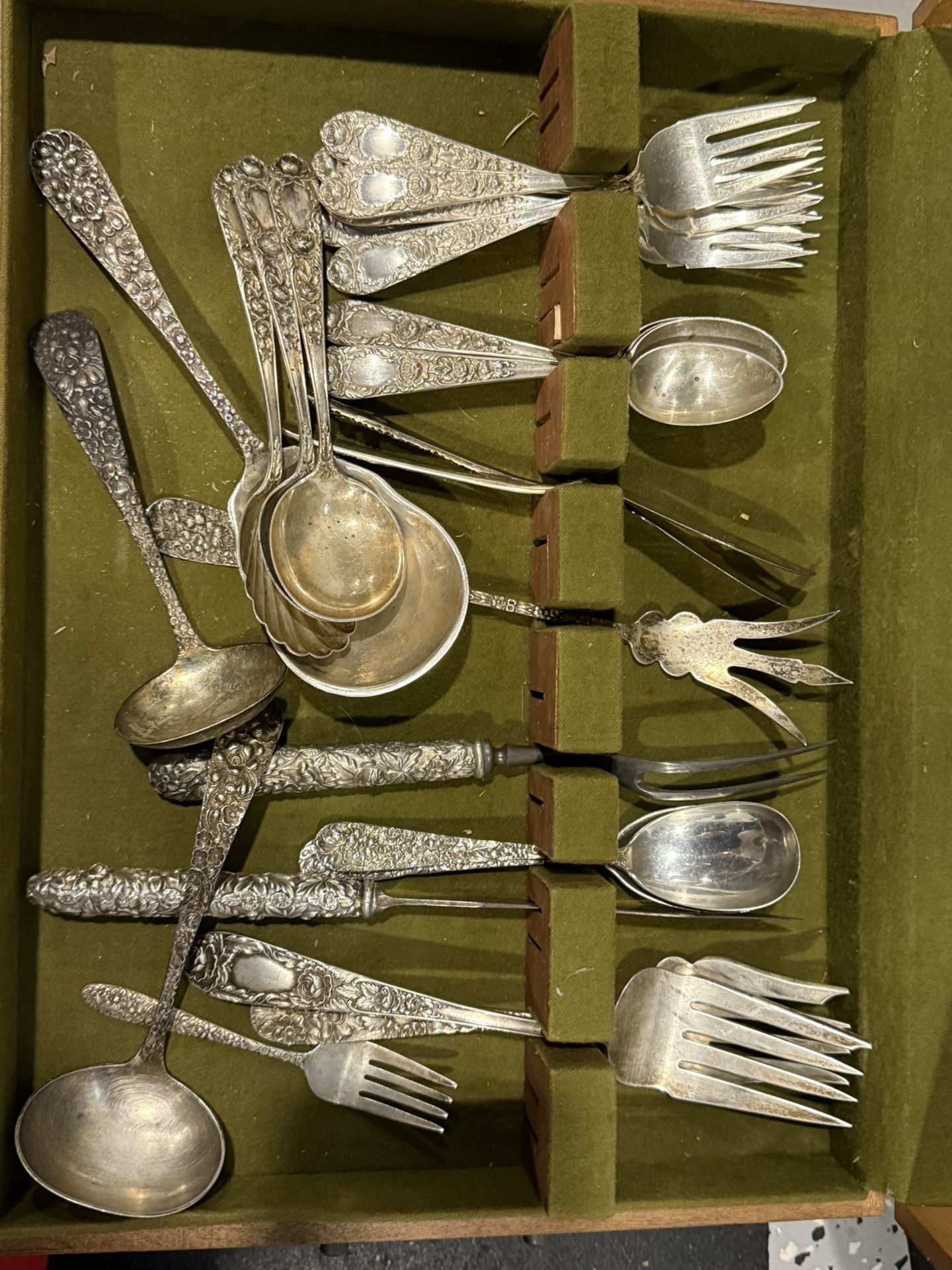 Lot of silver flatware. S Kirk and steiff. Over 1250g of .925 silver melt value is around $1350