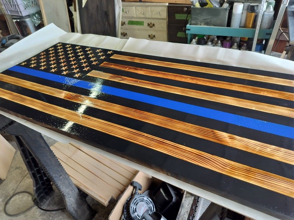 41x19 wood thin blue line flag. Ready to hang. Ask me how I can make this into a concealment flag