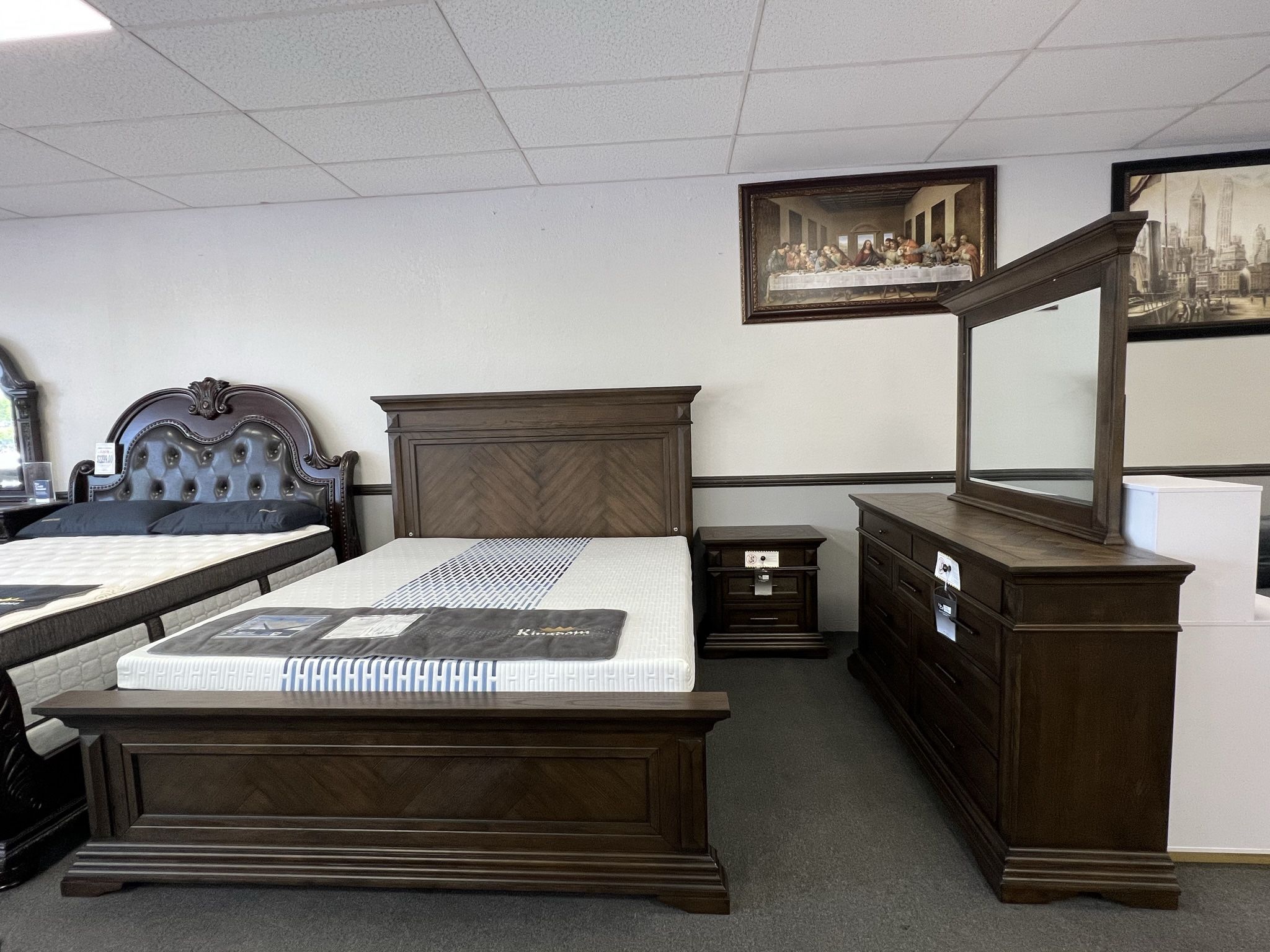 Bed, Dresser, Mirror, Nightstand