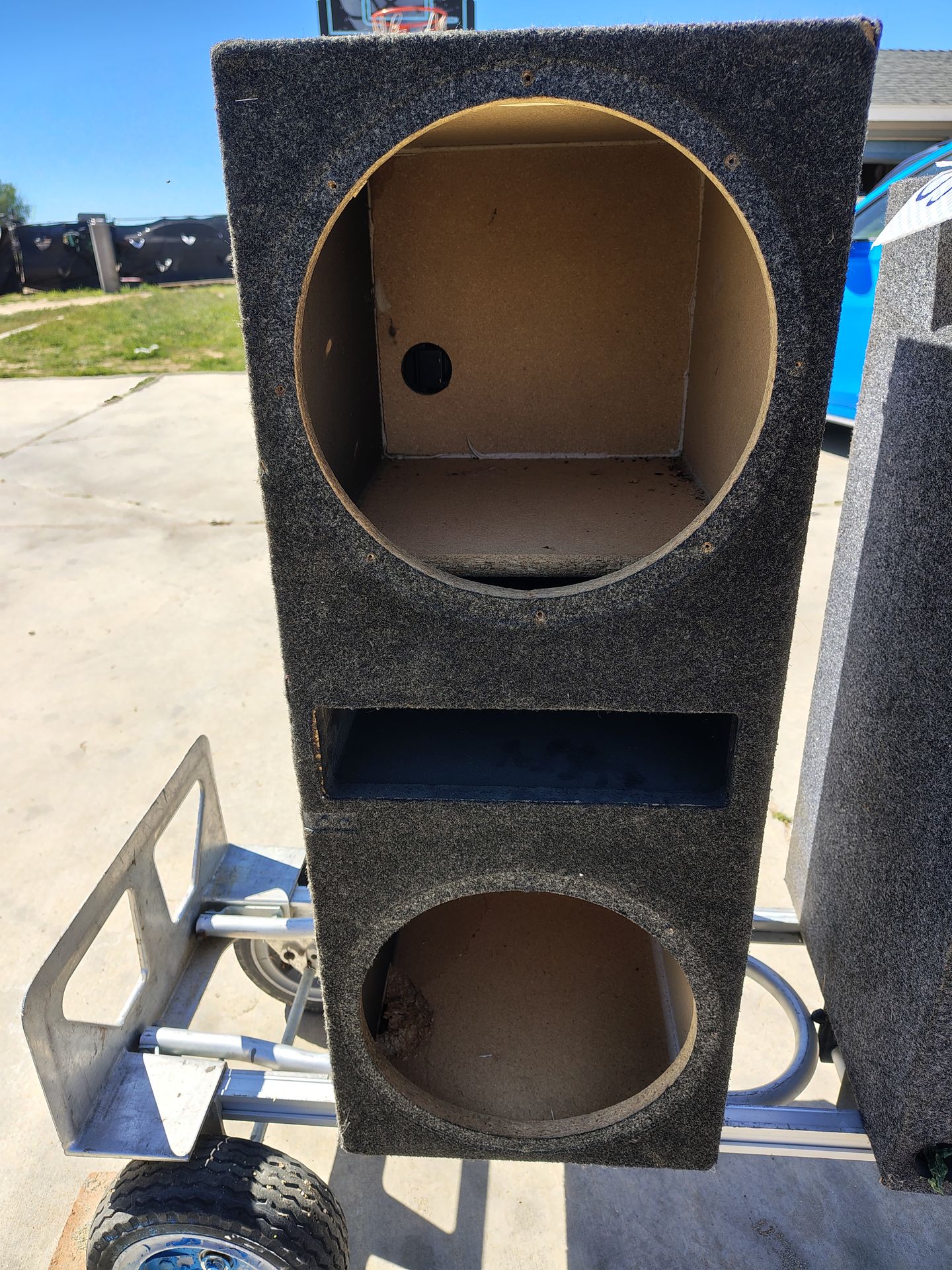 12-in speaker box okay condition carpet needs to be repaired a little bit still not bad nothing wrong with the box itself?