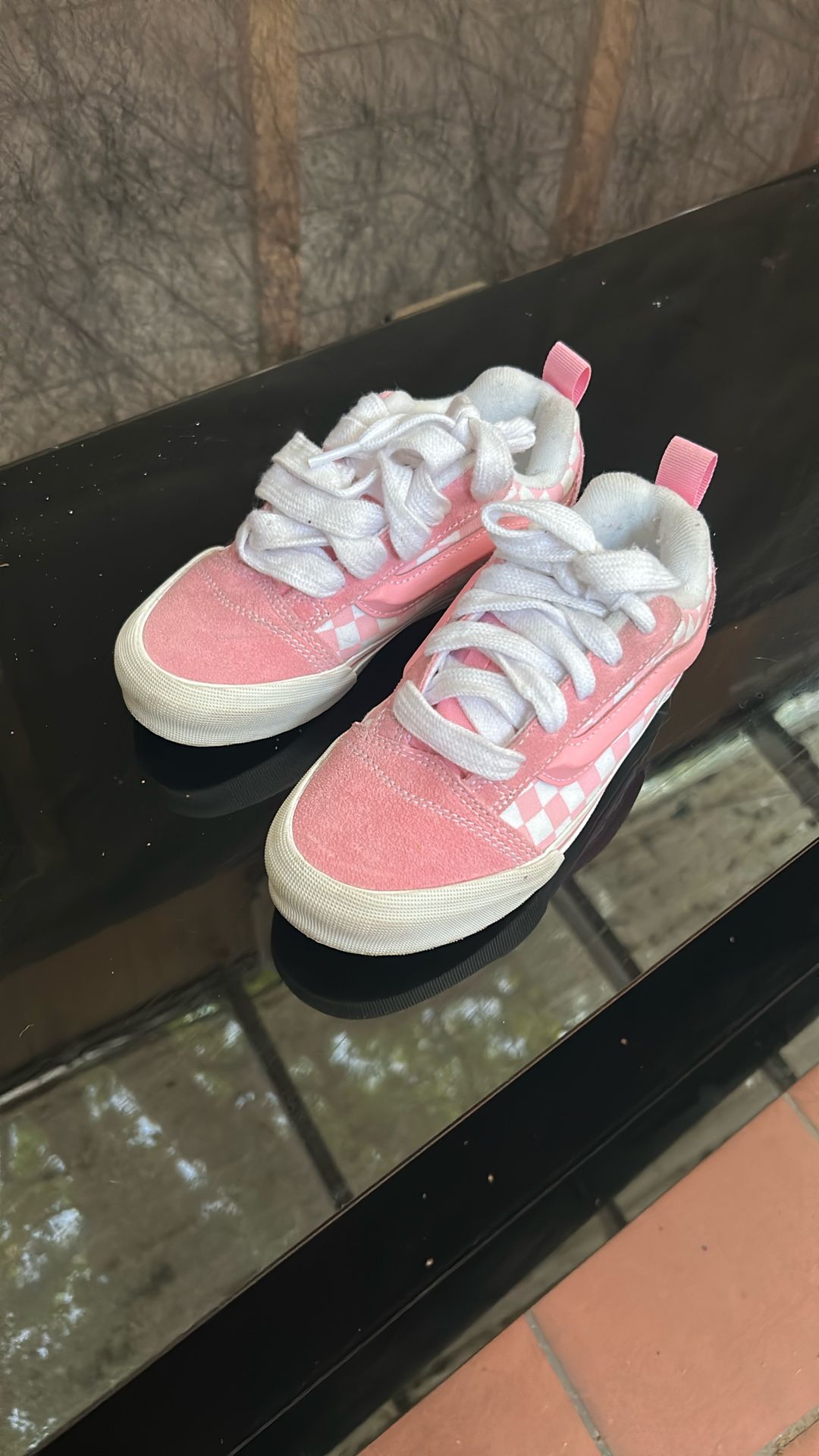 Pink vans, wore once, my daughter outgrew them really fast. Size 2 in US kids