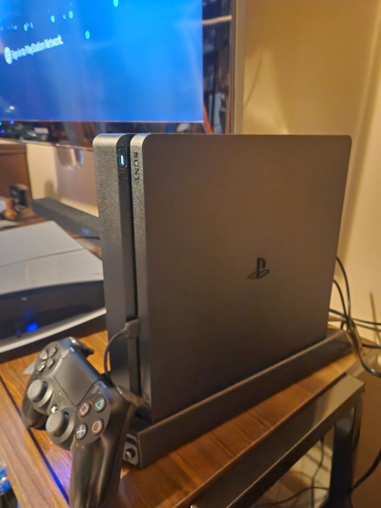 1TB PS4 slim with cooling tower and one contoller for sale. $150