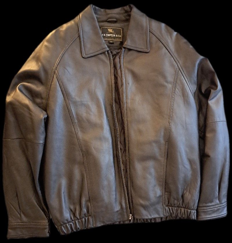 For sale pre-owned leather jacket. Has two outside packets, and two inside.