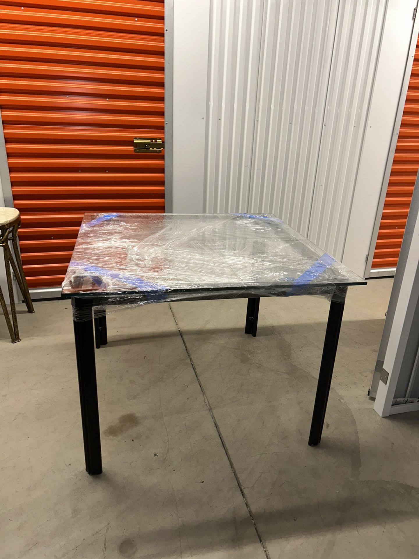 Modern glass top table with a leather-wrapped frame and black legs — clean, unique look. The leather detail gives it a more upscale feel compared to regular metal tables. Glass top is currently wrapped for protection (kept it that way to avoid scratches), but it’s in good condition underneath. Works great as: • Dining table • Desk / workspace • Office table • Thick glass top • Leather-wrapped frame (rare detail) • Sturdy and well built • Minimal / modern style Only selling because I don’t need it anymore.