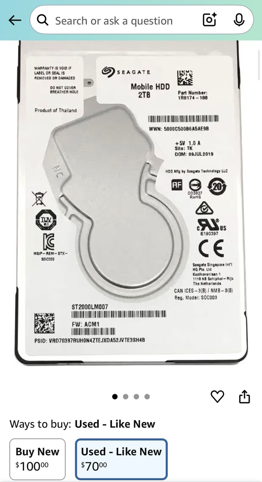 2TB 2.5” HDD