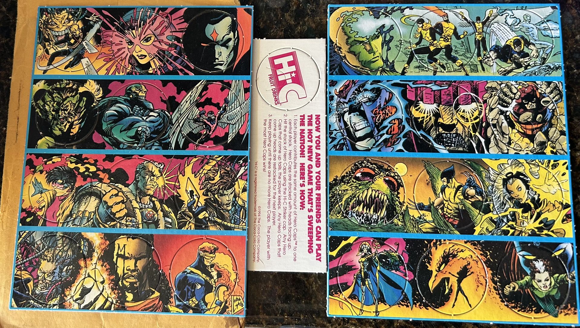 X-MEN POGS COMPLETE SET OF 24 - UNPUNCHED MARVEL- Hi-C INCLUDES INSTRUCTIONS Or best offer