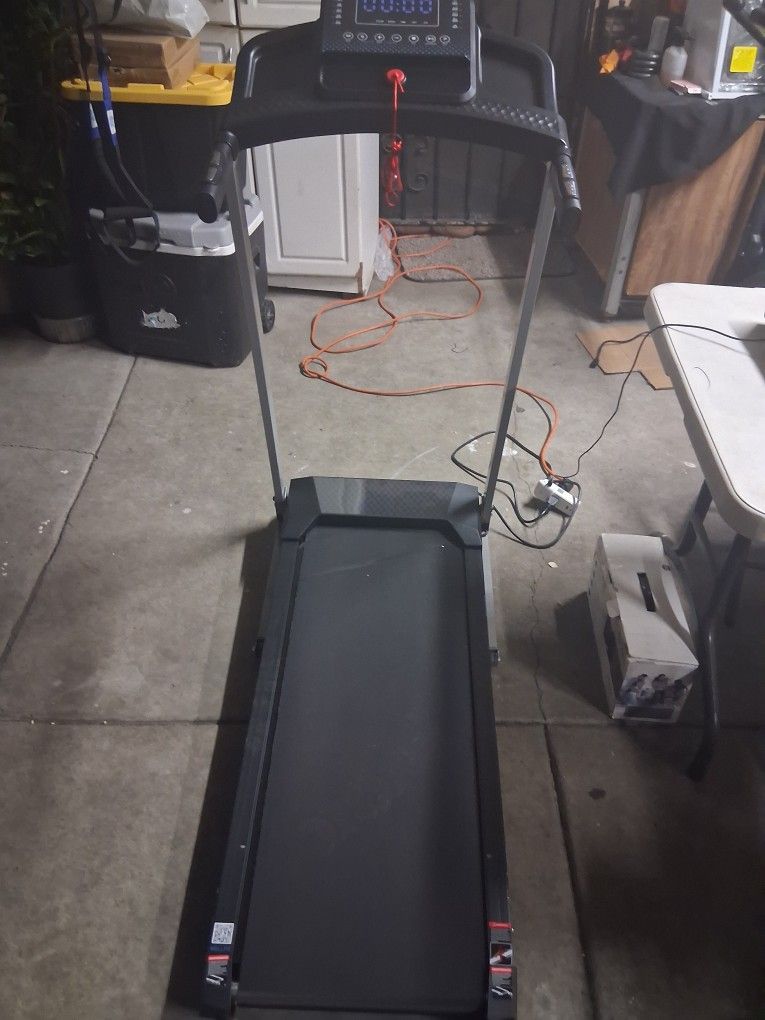 Treadmill with Bluetooth 330lbs capacity led display is stored away