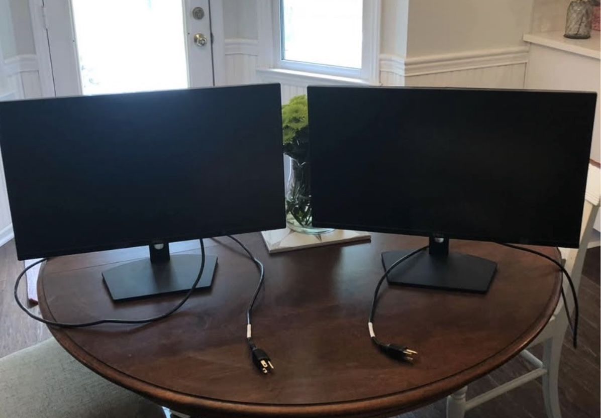 Two almost new Dell 24 inch monitors with HDMI cables. In excellent condition. Barely used.