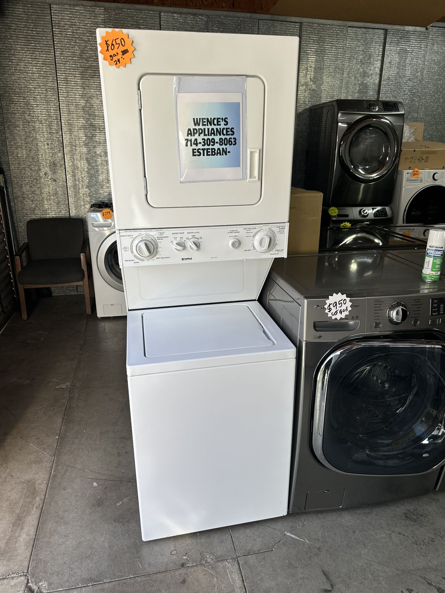 Nice Kenmore Stackable washer and gas dryer 24 inches wide heavy duty, direct drive in excellent working condition with 4 months warranty delivery available.