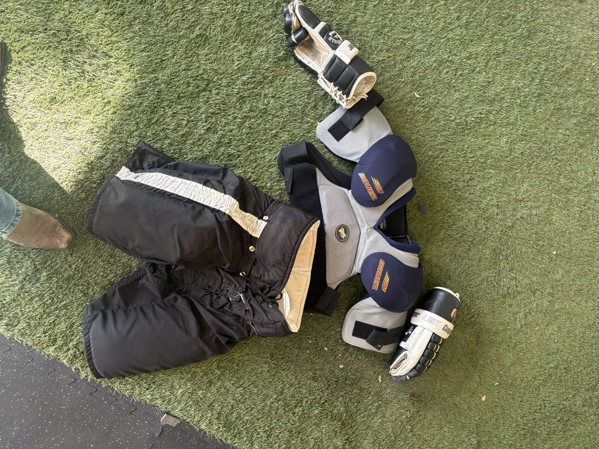 150 for all or best offer Can be sold separate shoot offers Bauer chest protecter Cooper hockey pants Cooper hockey gloves